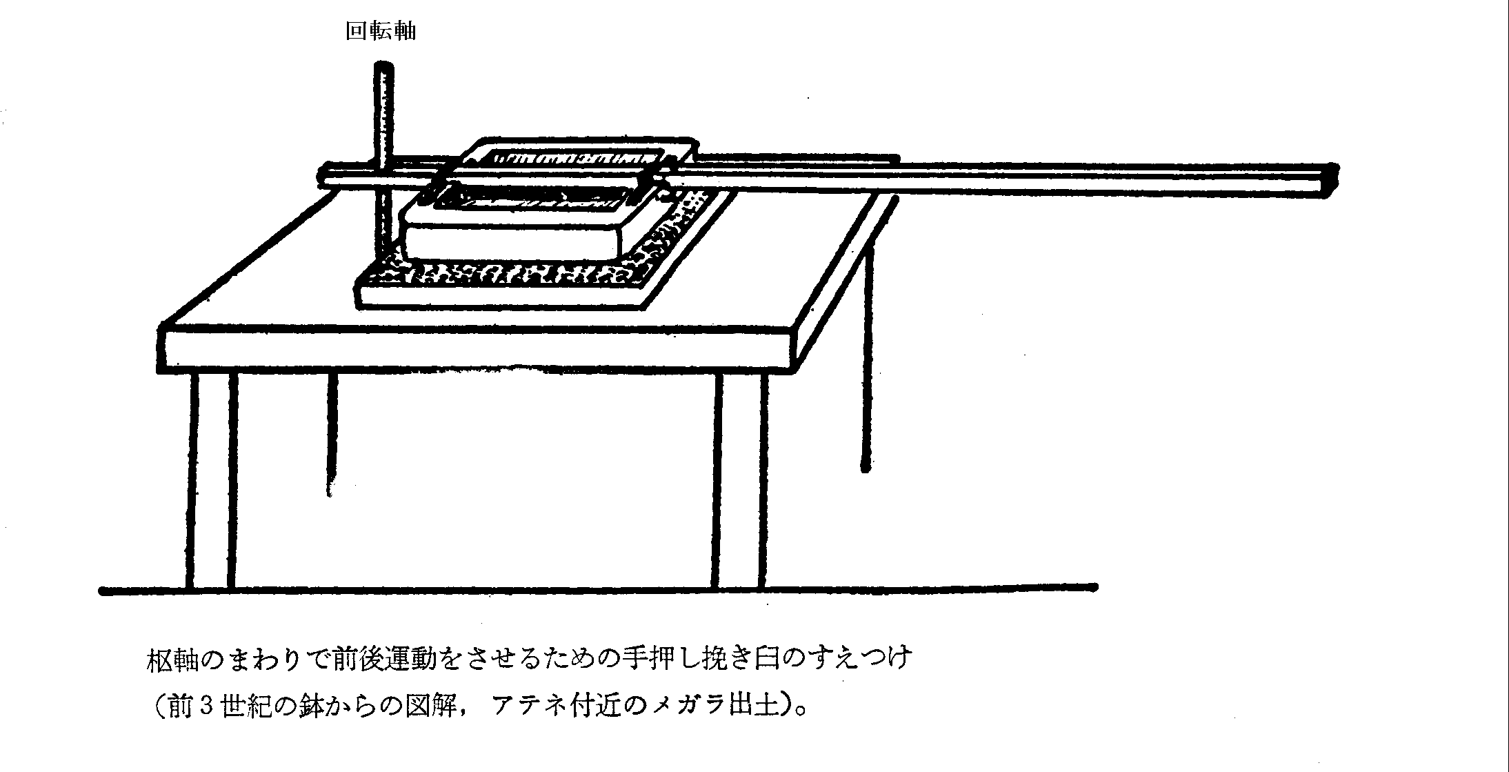 図4 手押し挽き石臼(B.C.3世紀のギリシアの鉢から取られた図)