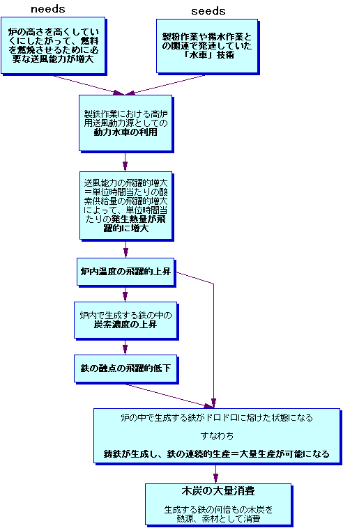 「鋳鉄生産」=「鉄の大量生産」にいたる技術の発達プロセス